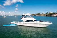 Castaway, our 55’ Sea Ray yacht is known for quality, style and performance. With a 16’ wide beam and 3 stateroom interior, this vessel boast ample space to accommodate for a private, and intimate getaway. From the spacious cockpit table seating for 8 people comfortably, to the open concept saloon which extends to the galley peninsula. This a luxurious floating house, makes for a remarkable experience of the Miami yachting lifestyle. In addition to local day charters in Miami , this vessel also embarks on long distance destination term charters to the Florida Keys, The Bahamas, and the Caribbean. Call today to inquire about pricing, availability, and our destination excursions.